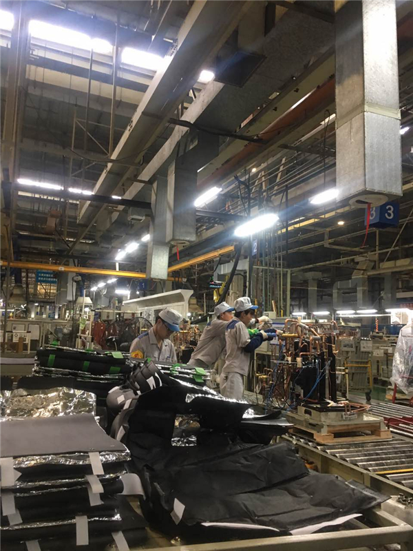 工廠內(nèi)部也是干凈整潔,工人們井然有序的忙著自己的工作,絲毫沒(méi)有被我們的打擾。還有帶隊(duì)負(fù)責(zé)人也是相當(dāng)?shù)膰?yán)肅啊,永遠(yuǎn)把安全放在**位的,根本不讓我們?cè)竭^(guò)安全警戒線。這樣的工作環(huán)境,這樣的安全意識(shí),有什么理由讓我們拒絕接受大金呢。