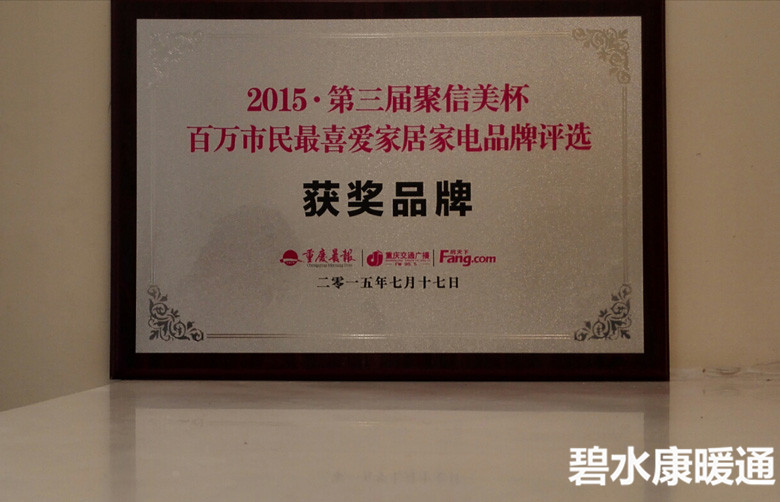 熱烈祝賀〔碧水康暖通〕再次榮獲2015“重慶百萬(wàn)市民*喜愛(ài)家居品牌”!
