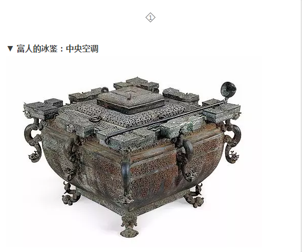 ▼ 富人的自雨亭:全自動(dòng)下雨涼亭 在亭子頂上收集雨水,存到天熱時(shí),讓水從房檐四周流下,形成雨簾。關(guān)鍵是可以通過自動(dòng)水車,把雨水循環(huán)利用,持續(xù)給亭子降溫。 富人就在這亭子里吟詩作畫,就算啥也不做,一個(gè)人靜靜也是極好的。 ▼ 窮人的空調(diào)房 窮人只能在地面上打一個(gè)洞,可別小看了這個(gè)洞,這里面可是口深井。只要把這個(gè)蓋子打開,夏天會(huì)有冷氣冒出,冬天則是暖氣。 不僅可以除給房子降溫,還可以把食物放進(jìn)井里冷鮮保藏。 冰鑒(hàn),在周代時(shí)就以出現(xiàn)。用青銅鑄成的大型容器。里外分兩層,外層放冰塊,內(nèi)層讓它空著,然后把蓋兒打開,絲絲冷氣自然會(huì)從冰鑒里冒出來,就像空調(diào)一樣。 但是你可能會(huì)疑惑,那冰從哪里來呢? 古代人會(huì)在冬天時(shí)采集冰塊,然后放在冰窖里保存。 等到了夏天,再由皇帝根據(jù)官職等級給大臣們發(fā)冰塊兒降溫,而老百姓是沒有冰塊用的。 ▼ 窮人的蓮蓬頭:淋浴專屬 窮人就沒那么幸福了,只能挖口井,用蓮蓬頭做成的花灑沖沖涼,消除暑意。 ▼ 富人的竹夫人 “竹夫人”,用竹蔑編成的可以抱著睡覺的“夫人”,感覺比老婆解暑呢! 《紅樓夢》里邊還有一首詩形容它:“有眼無珠腹內(nèi)空,荷花出水喜相逢。梧桐葉落分離去, 恩愛夫妻不到冬。” ▼ 窮人的大冬瓜 農(nóng)民都喜歡種冬瓜,冬瓜在夏天成熟,吃著消暑,吃不了也不容易壞。白天把大冬瓜泡在水里,晚上抱著睡覺,聽起來特別適合單身狗呢。 ▼ 富人的象牙席 用象牙制成的席子,它的工藝尤其復(fù)雜,而且只能在南方制作,因?yàn)楸狈教稍锪?。象牙在劈削成片時(shí)容易斷裂,更不可能編織成席。 因此古人配制出一種特殊溶劑浸泡象牙,軟化了象牙,*后再劈成薄片編織。不過這可不是普通的富人可以擁有,連皇上這么壕的人也都求之不得。 ▼ 窮人的竹涼席 “寧可食無肉,不可居無竹?!笨梢?,竹涼席對平民的重要性。 ▼ 富人的瓷枕 古代的一種夏季納涼的寢具。瓷枕有光滑晶亮的釉面,摸起來清涼沁人,中醫(yī)認(rèn)為有“清涼沁膚、爽身安神”的功效,而且這瓷枕還有各種造型。 其中,數(shù)北宋定窯孩兒枕*為罕見,一小兒頭枕雙臂,俯臥床榻。 雖然很萌,但是這睡起來真的不會(huì)硌得慌嗎... ▼ 窮人的各種枕頭 除了竹枕,窮人還會(huì)但是他們在枕頭里填各種東西,研究出了藥枕,石膏枕,其中有一種*酷——冷暖枕。 在枕頭里面做了一個(gè)空夾層,上面有一個(gè)注水洞口。夏天睡覺,就把井里的水倒進(jìn)去,墊上頭巾,到了冬天還可以到溫水進(jìn)去。 ▼ 富人的半自動(dòng)風(fēng)扇 富人家里都有小仆人可以幫忙扇扇子,但是那涼風(fēng)是斷斷續(xù)續(xù)的、一陣一陣的,不夠爽。 于是就發(fā)明了這種半自動(dòng)風(fēng)扇,在一個(gè)軸上裝上扇葉,軸心上拴上繩索,仆人拉動(dòng)軸心上的繩索,扇葉就能旋轉(zhuǎn),帶來習(xí)習(xí)涼風(fēng)。 ▼ 窮人的扇子 扇子,在古代又稱“搖風(fēng)”,“涼友”。 扇子的總類特別多,老百姓主要靠竹編的扇子納涼,有錢人買用絹帛制成的扇子,還有很多文人墨客都會(huì)DIY自己的扇子,在扇面上寫詩作畫,來體現(xiàn)自己的逼格。 ▼ 富人服飾:紗 富人穿紗,穿了和沒穿一樣。 比如這件在素紗襌衣(音dān),在1972年在中國湖南省長沙馬王堆漢墓一號墓中出土的。 超級輕,重量僅為49克的素紗襌衣,大概就是3粒葡萄那么重吧。而且特別薄,疊了十層還可以看到報(bào)紙上的字。 ▼ 窮人服飾:麻+開襠褲 出土的麻布衣服 古代生產(chǎn)各種麻類植物,做成麻。用麻織出來的是布,所以老百姓都穿麻布衣服。 但是古人并不都像電視劇里那樣裹得嚴(yán)嚴(yán)實(shí)實(shí),古代男人在夏天也流行“打赤膊”。 而女人則流行穿“開襠褲”。古人外穿深衣(即上衣下裳連體的一種服裝),里面多會(huì)穿脛衣。 它是褲子的原始雛形,僅有兩只褲管,沒有襠,上端用帶子系在腰部。 體外是涼爽了,但是體內(nèi)怎么辦? ▼ 富人的小冰箱:冰鑒 是不是像個(gè)小冰箱,想吃什么冰的食物只要往里放就行了~ ▼ 窮人的小冰箱:井 窮人就沒那么幸福了,只能挖口井,把想吃的水果、酒用繩子綁好了,掛在井的內(nèi)壁上涼涼,實(shí)在不行直接綁好,丟進(jìn)井水里。 雖然條件是差點(diǎn),但是那透心涼的感覺堪比小冰箱。 ▼ 富人的解暑甜品:冰酪 人們把各種水果汁、牛奶、冰塊、菊花等混合調(diào)制成冰凍的飲品,稱之為“冰酪”。 據(jù)說,馬可·波羅來中國時(shí),受元世祖賞賜吃冰酪,大為喜歡。于是,他把“冰酪”的制作技術(shù)帶回意大利。之后傳到了法國,又傳到了英國。英國人改造后,*后演變成為了我們今天常吃的“冰激凌”。 ▼ 窮人的消暑利器:湯餅 湯餅其實(shí)就是面片湯,將調(diào)好的面團(tuán)托在手里撕成片下鍋煮。 雖然它本身不是清涼食品,但在夏天吃熱氣騰騰的湯餅時(shí)能出一身大汗,從而帶走體內(nèi)大量熱氣。 正如在《荊楚歲時(shí)記》里記載:“伏日進(jìn)湯餅,名為消惡”。天熱喝湯餅,可以消除惡氣,也就是暑氣。 雖然這種方式就像在夏天吃火鍋,熱得大汗淋漓,但是卻是一種養(yǎng)生的方式。 心靜自然涼 ▼ 富人靜心法寶:納涼圖 古代的富人就讓畫匠幫他們畫畫,畫什么呢? 納涼圖! 把這些看起來很