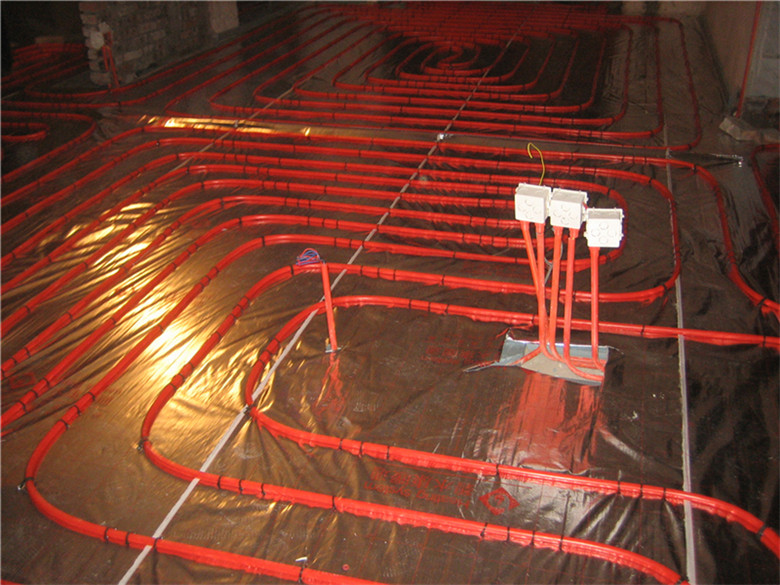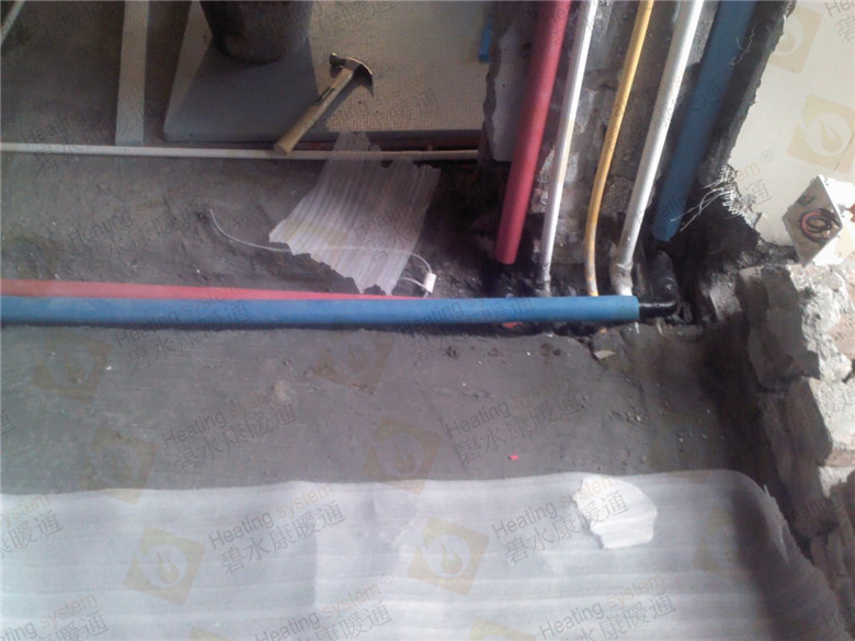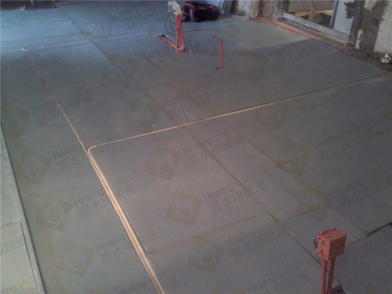 3.鋪設反射膜后,再鋪設PE-RTⅡ代地暖專用管,用專用卡釘固定盤繞(雙管螺旋鋪設,平整,彎曲無變形);
